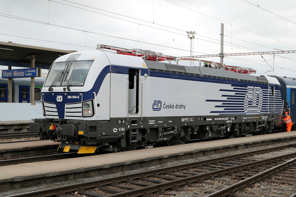 CD - Czechia Brand new "Vectron" 230km/h electric locomotive 384 034 has just arrived at Stare Mesto, today's end station from Prague due to track maintenance works. Stare Mesto u Uherskeho Hradiste, 04-04-2026 Photo by Marco van Uden |