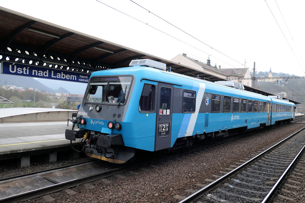 Arriva - Czechia Diesel trainset 845.310 (second-hand German class 628.2) is seen in the station of Usti nad Labem. Usti nad Labem, 03-04-2026 Photo by Marco van Uden |