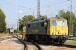 A private electric locomotive with number 86 604, owned by private operator "Rail Net Cargo" standing at railway station Obrazcov Chiflik.
