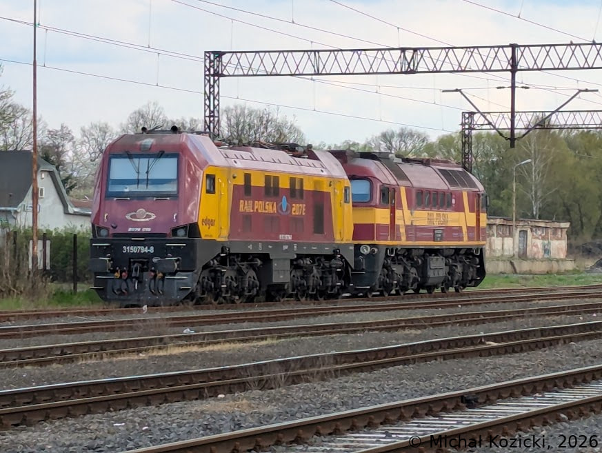 Rail Polska 207E-015 and M62M-004 are sen stabled in Luban Slaski, Poland, 21.04.2026.