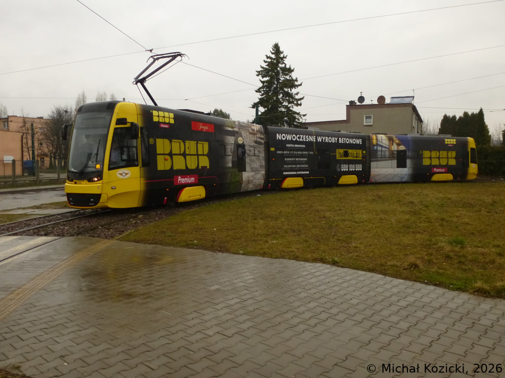 Pesa 2012N No. 829 on route 19 is reversing direction at the Stroszek Zajezdnia end loop, Bytom, Upper Silesia, Poland, 23.03.2025.