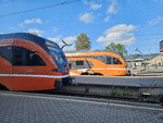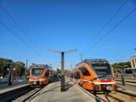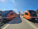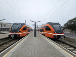 A 2 DMUs Stadler Flirt, both owned by company ELRON at railway station Tallinn, using a passenger trains.