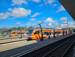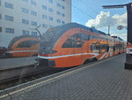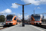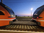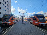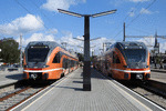 A 2 DMUs Stadler Flirt, owned by company ELRON at railway station Tallinn, using a passenger trains.