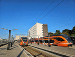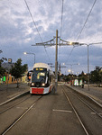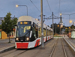 A tram CAF Urbos AXL on the streets in Tallinn.