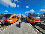 A 2 EMUs Stadler Flirt, owned by company ELRON at railway station Paldiski, using a passenger trains.