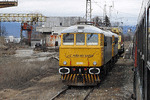 A private diesel locomotive with number 92 52 00 07 206 - 2 , owned by private operator "Euro Engineering" at railway station Pazardjik before pulling a testing train.