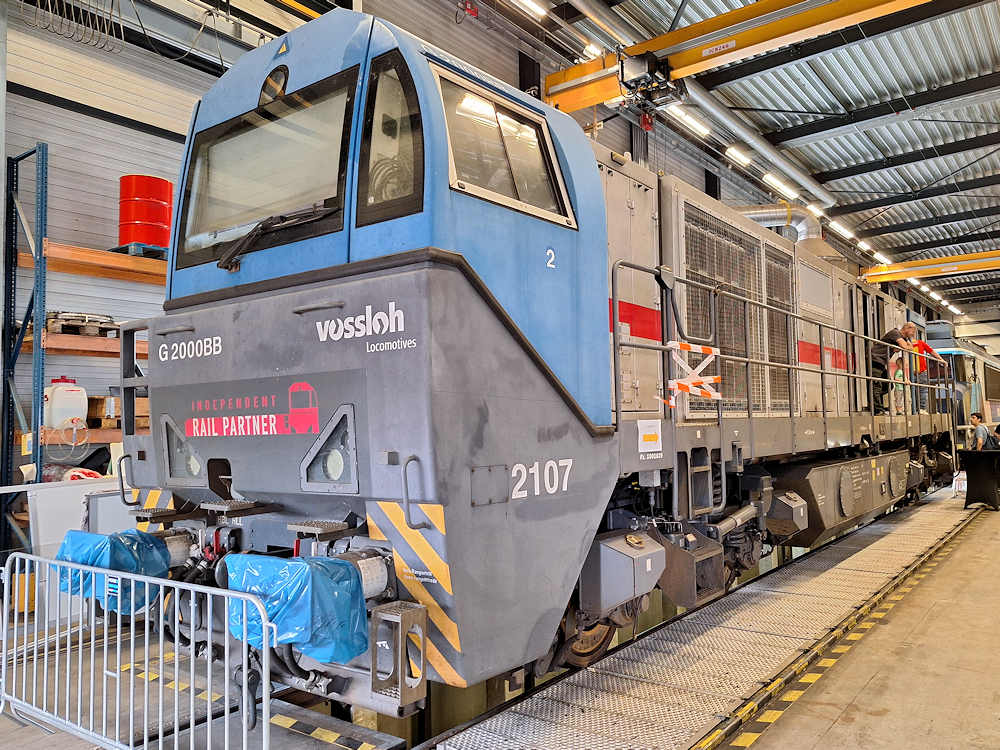 IRP - The Netherlands Rail Days 2025 - Workshop of Strukton/Arriva in Zutphen Former IRP (now Lineas) locomotive 2107 of type G2000BB built by Vossloh is seen inside the workshop. Zutphen, 20-09-2025 Photo by Marco van Uden |