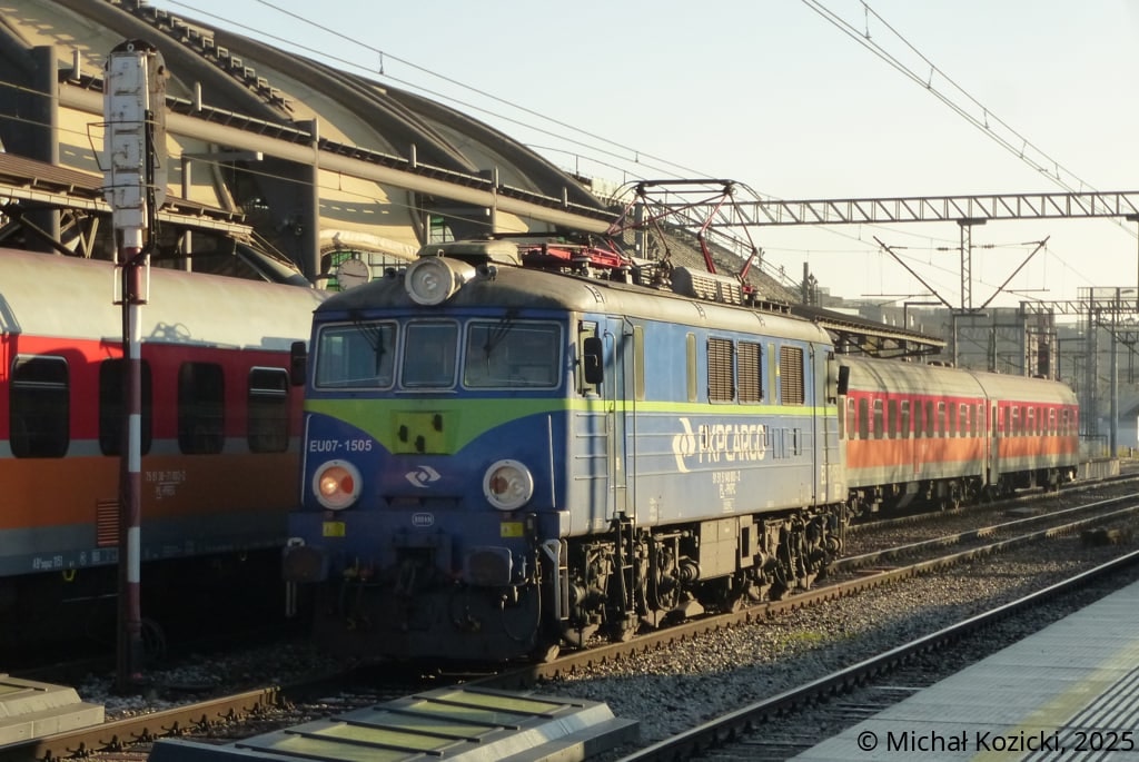 PKP Cargo EU07-1505 on lease to PolRegio is running around the "Kamienczyk" train to Szklarska Poreba Gorna that it brought from Poznan Gl., Wroclaw Gl., Poland, 08.11.2025.