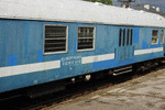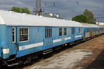 A baggage car of class 57, type "Dlm" at railway station Iskar in composition of fast train with number 1611 from Sofia to Svilengrad.