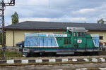 A private diesel shunter with number 92 52 00 55 921 - 7, owned by private operator "Bulmarket" at railway station Iskar after shunting duties.