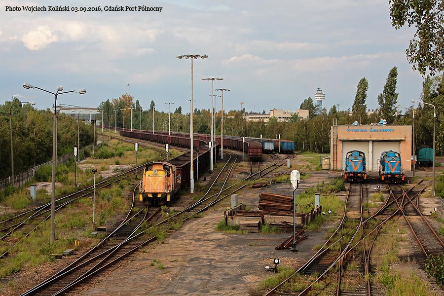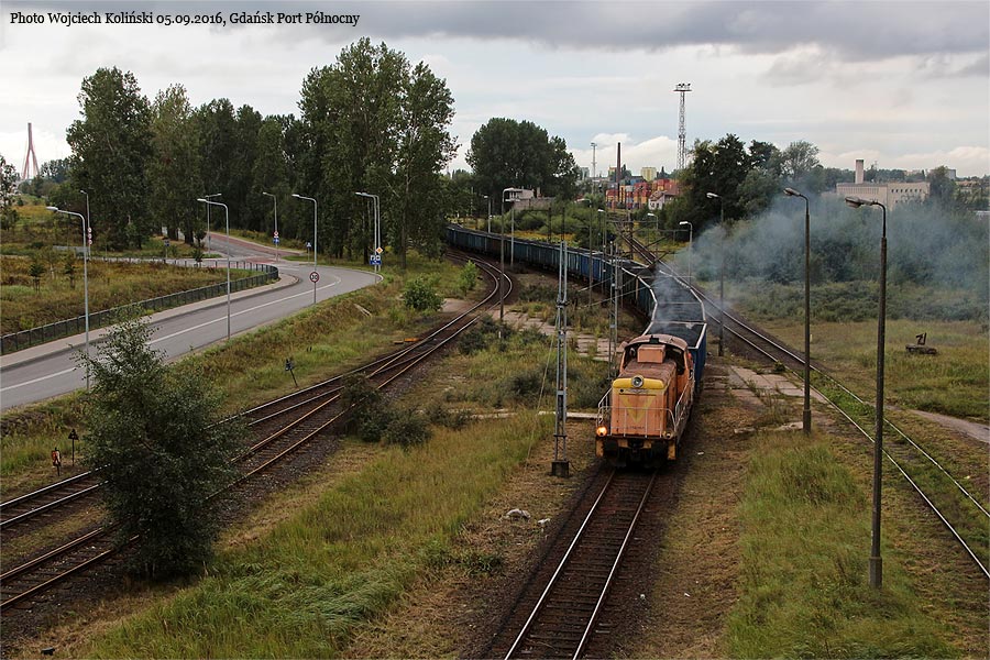 Tabor Debica SM42-2216 with the freight train to Przedsiebiorstwo Przeladunkowo-Skladowe "Port Polnocny" 05.09.2016, Gdansk Port Polnocny Photo W. Kolins |
