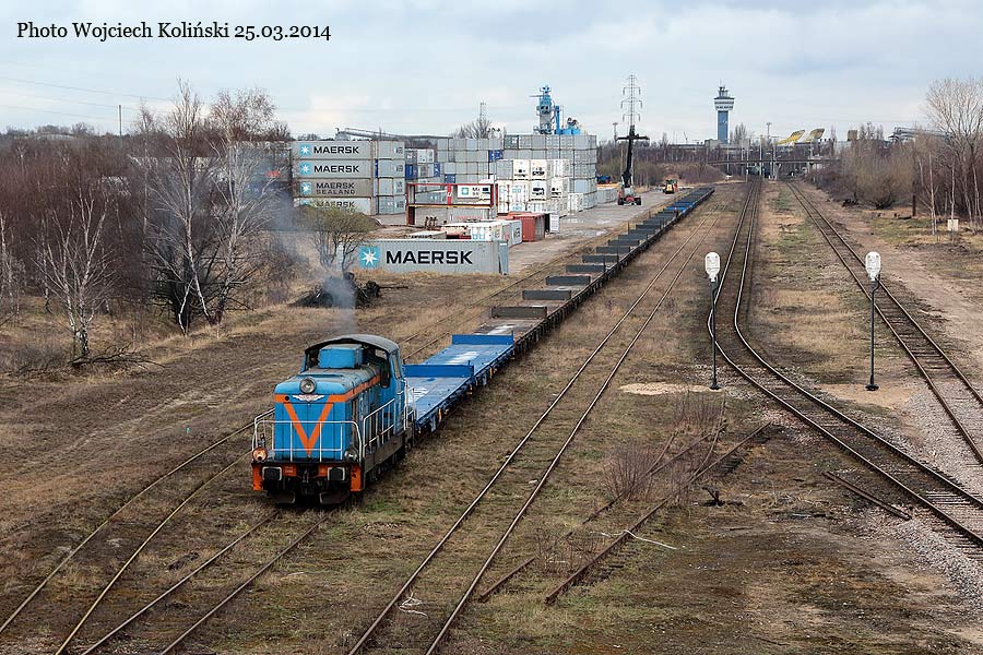 Przedsiebiorstwo Przeladunkowo-Skladowe "Port Polnocny" (PPS PP) SM42-2256 prepares a set of platforms for loading 25.03.2014, Gdansk Port Polnocny Photo W. Kolins |