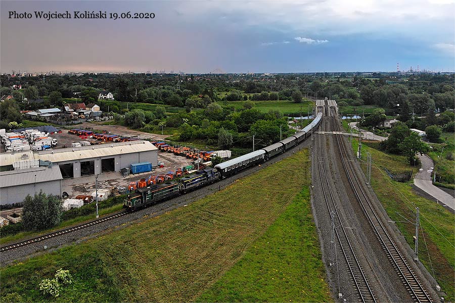 Lotos Kolej SM42-2324 + SM42-411 (Majkoltrans) with the touristic train "Zuraw" Gdansk Olszynka - Gdansk Glowny 19.06.2020, track Gdansk Olszynka - Gdansk Poludniowy Photo W. Kolins |