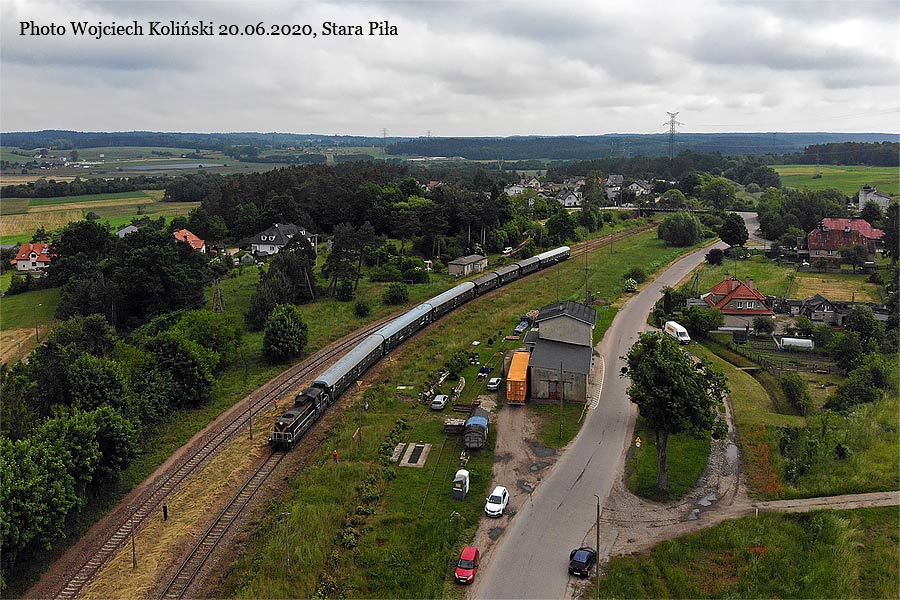 Lotos Kolej SM42-2324 with the touristic train "Kaszub" Gdynia Glowna - Kartuzy 20.06.2020, track Zukowo - Borkowo Photo W. Kolins |