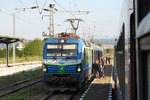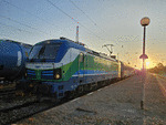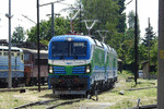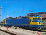 A private electric locomotive with number 91 53 0 40 0665 - 2 owned by private operator "Express Service" standing in base near railway station Obrazcov Chiflik.