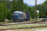 A private diesel locomotive with number 92 52 00 07 070 - 2, owned by private operator "Port Rail" at railway station Pirdop, after pulling a freight train.