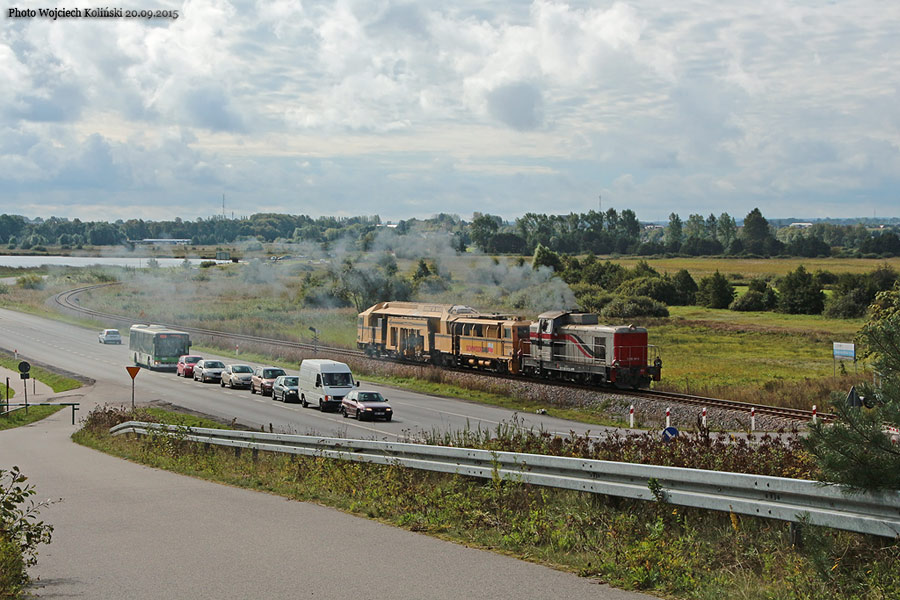 Dolnoslaskie Linie Autobusowe (DLA) SM42-2444 (+ SM31-010) with the freight train Reda - Slupsk 30.05.2015, Reda Photo W. Kolins |