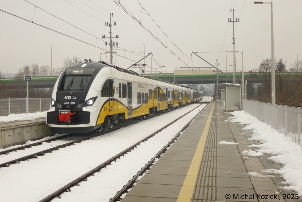 KD 48WEc-055 and 054 are seen stopping at Jelenia Gora Zabobrze on a service from Szklarska Poreba to Wroclaw, Poland, 29.11.2025.