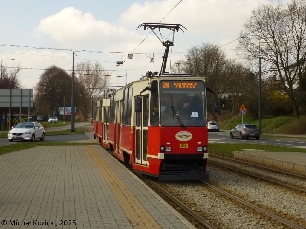 Konstal 105Na No. 636 and 635 on route 26 at Dandowka Skrzyzowanie, Sosnowiec, Upper Silesia, Poland, 25.03.2025.