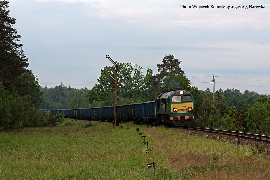 PKP Cargo ST44-862 is going from Narewka to Planta. This was the last day of this locomotive's service; it was later converted to ST44-1260. 31.05.2017, Narewka Photo W. Kolins |