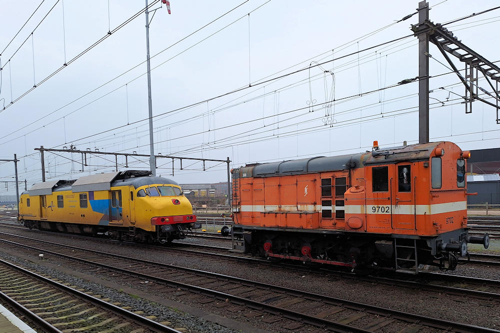 RFO - The Netherlands Old diesel shunter 9702 (former NS class 600) in service for Rail Force One has brought Eurailscout BRT-91 "under the wires" for another GSM-R test run of the network. Amersfoort, 05-03-2024 Photo by Marco van Uden |