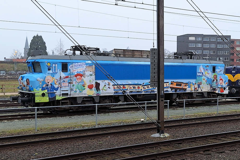 RXP - The Netherlands Electric locomotive 9902 of Railexperts (former NS class 1600) has recently received an advertising livery for a new children's book. Amersfoort, 05-03-2024 Photo by Marco van Uden |