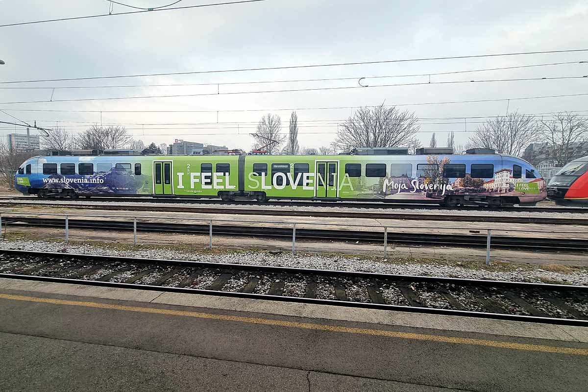 SZ Slovenske Zeleznice Slovenian Railways EMU-2 Class 312 nr. 312-001 in special I FEEL SLOVENIA colors stabled at Ljubljana Central Station. 06/02/2024.
