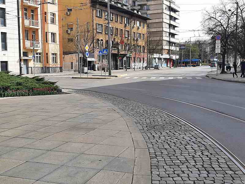 Sofia Vasil Levski square. March 2024. The normal gauge track, view direction bul. Vasil Levski. Photo by M.Koblischka |