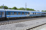 A second class couchette car with number 51 56 05 70 517 - 4 type "Bocmh" of ZSS ( Zeleznicna Spolocnost Slovensko / Slovakian Railways) at central railway station Plovdiv in composiution of an OPTIMA train.
