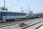 A second class couchette car with number 51 56 05 70 513 - 3 type "Bocmh" of ZSS ( Zeleznicna Spolocnost Slovensko / Slovakian Railways) at central railway station Plovdiv in composiution of an OPTIMA train.