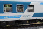 A second class couchette car with number 51 56 05 70 501 - 8 type "Bocmh" of ZSS ( Zeleznicna Spolocnost Slovensko / Slovakian Railways) at central railway station Plovdiv in composiution of an OPTIMA train.