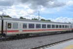 A second class passenger car of DB (Deutsche Bahn / German Railways) with number 61 80 20 94 447 - 5, type Bpmmz at central railway station Plovdiv in composition of special train.