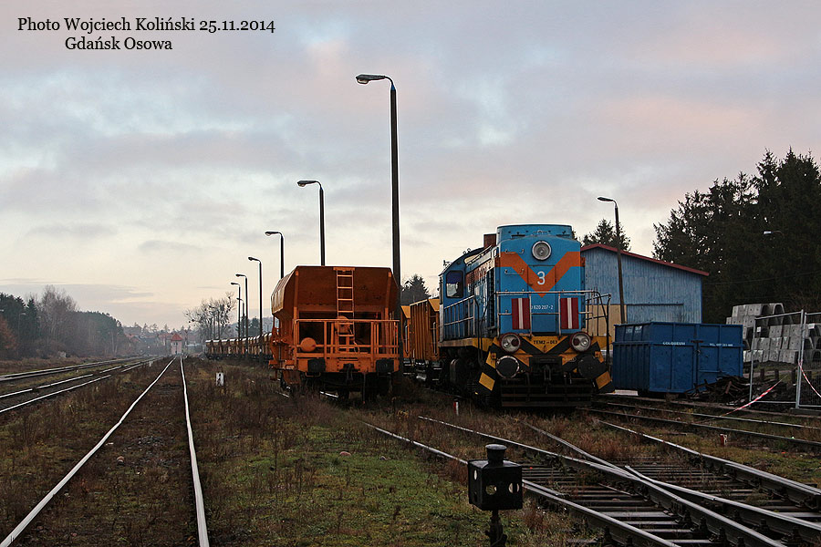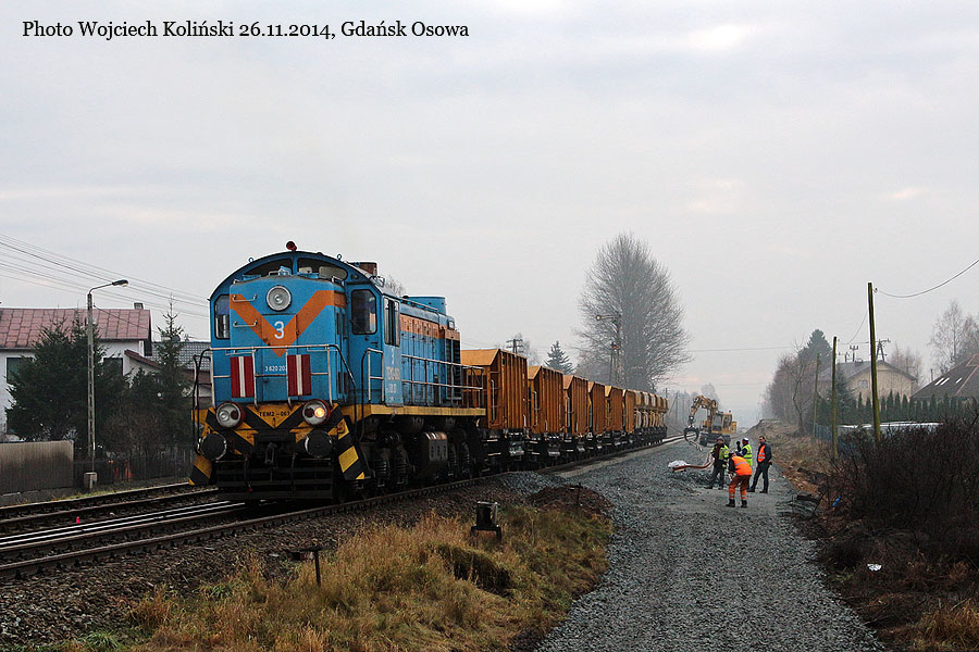 Tabor Debica TEM2-063 with a working train 25.11.2014, Gdansk Osowa Photo W. Kolins |