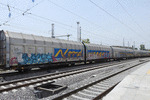 A freight car with type "Laaeilprs" of SJ (Statens Jarnvagar / Swedish Railways) at central railway station Plovdiv in composiution of an OPTIMA train. A video about departuring the train from Plovdiv, you can see here: