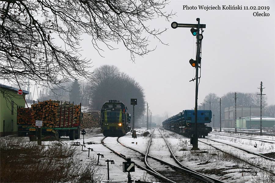 PKP Cargo ST48-014 + ST44-360 with a freight train from Olecko 11.02.2019, Olecko Photo W. Kolins |