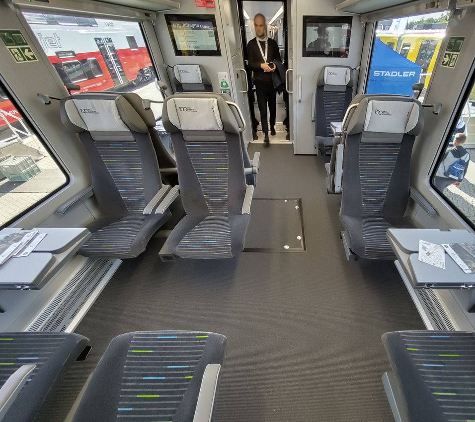 | ABe 6/12 90 85 843 1102-5 "Comino" of Ferrovie Autolinee Regionali Ticinesi. Interior of first class (low floor section). InnoTrans, Berlin, september 2024. |