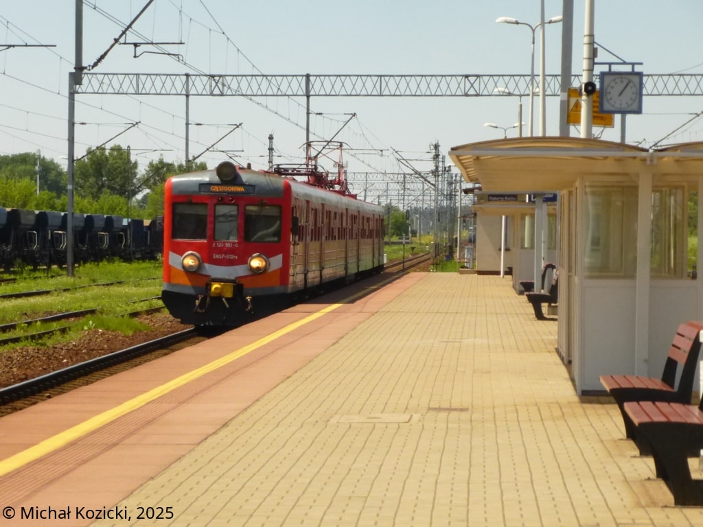 PolRegio EN57-612 is stopping at Czestochowa Stradom on a service from Tarnowskie Gory, Poland, 08.07.2023.