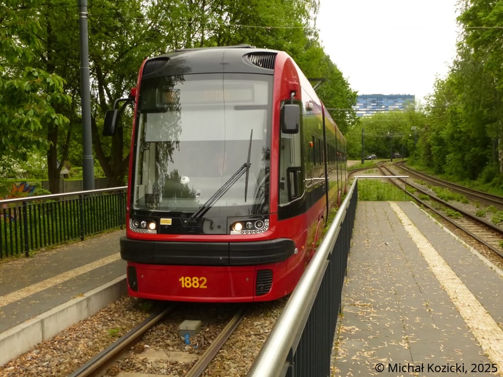Pesa 122NaL No. 1882 on route 12 at Telefoniczna Zajezdnia, Lodz, Poland, 06.05.2024.