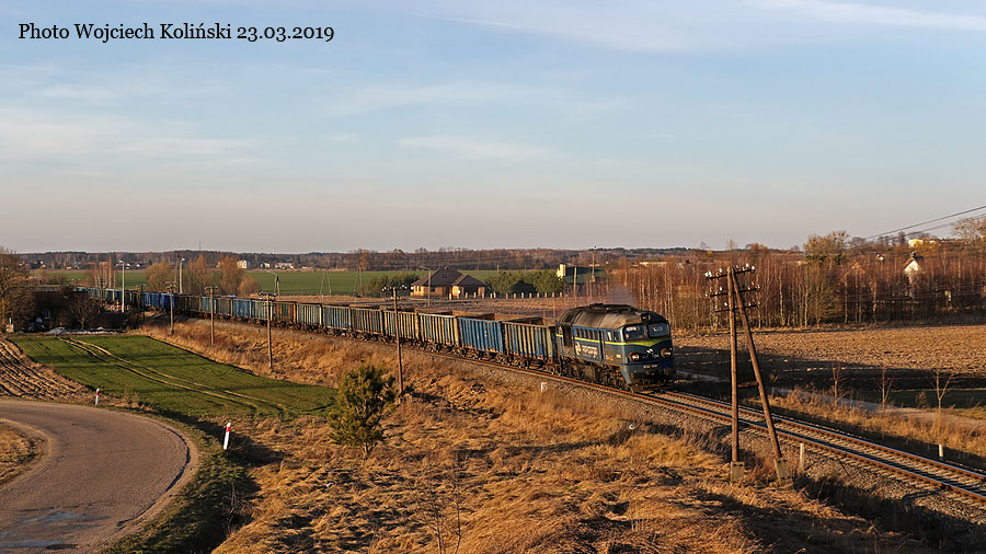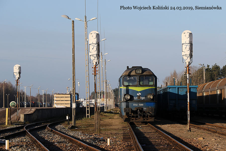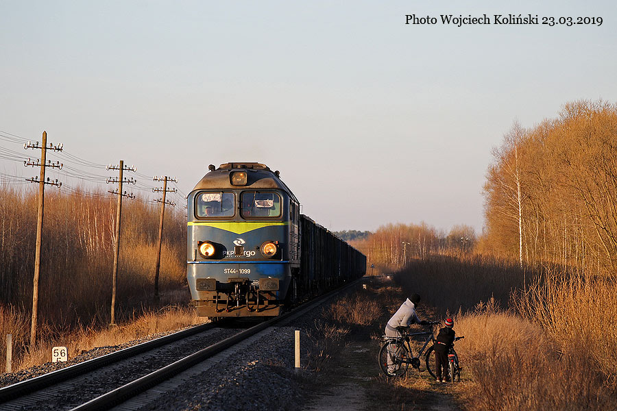 PKP Cargo ST44-1099 with the freight train Bialystok - Siemianowka 23.03.2019, track Lewickie - Holowki Photo W. Kolins |