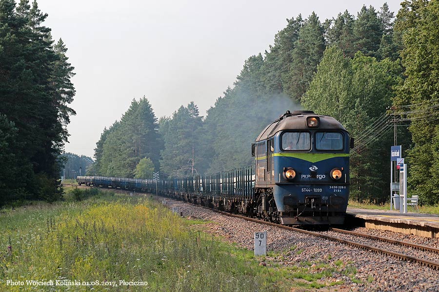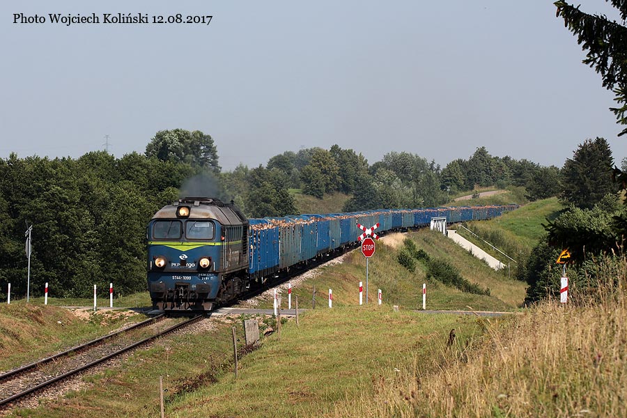 PKP Cargo ST44-1099 with the freight train Papiernia - Bartodzieje 01.08.2017, Plociczno Photo W. Kolins |