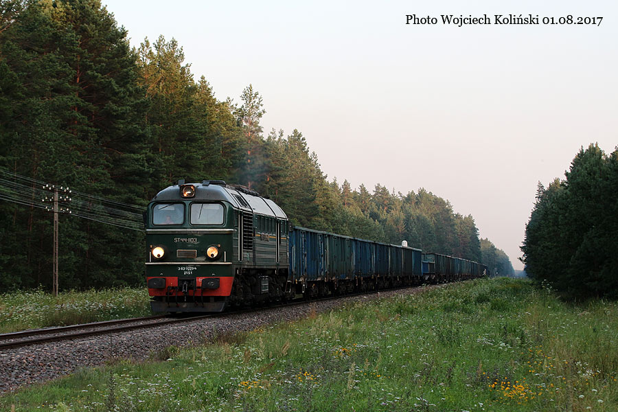 PKP Cargo ST44-1103 with the freight train to Las Suwalski 01.08.2017, track Szczepki - Plociczno Photo W. Kolins |