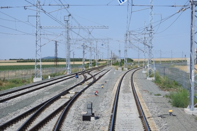 91 52 10 80 036 - 2 cross through railway station Merichleri with fast train with number 8613 from Sofia to Burgas via Plovdiv.
