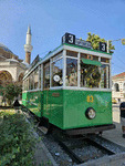A historic tram, standing in Sofia like a museum exhibit.