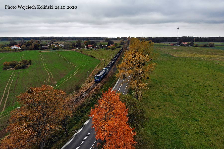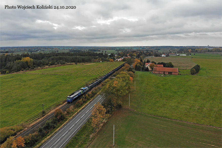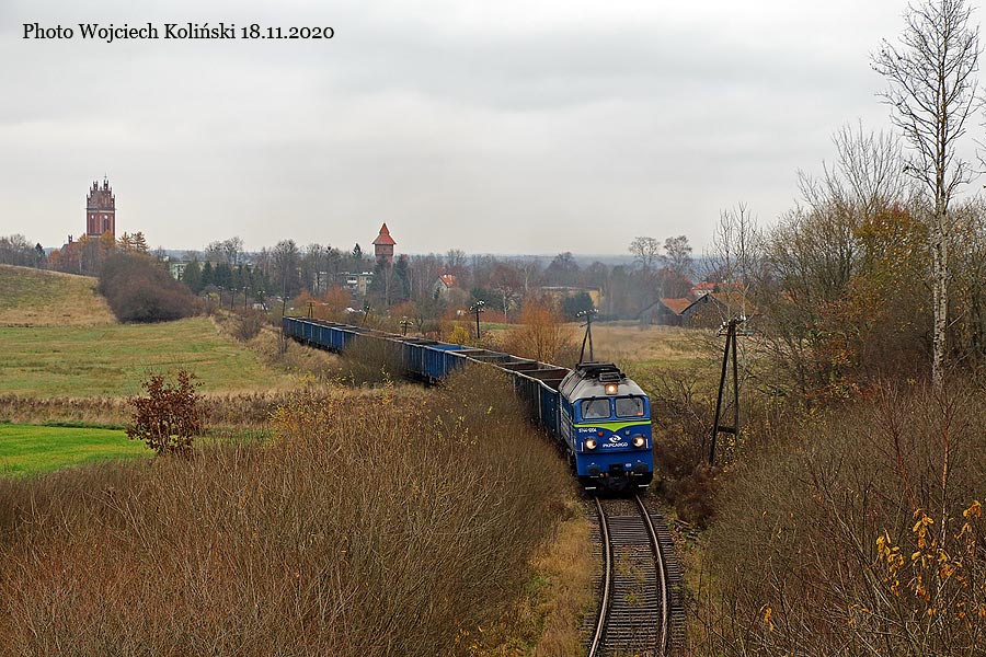 PKP Cargo ST44-1204 + SM42-1286 with the freight train Braniewo - Orneta 24.10.2020, track Grodzie - Jarzebiec Photo W. Kolins |
