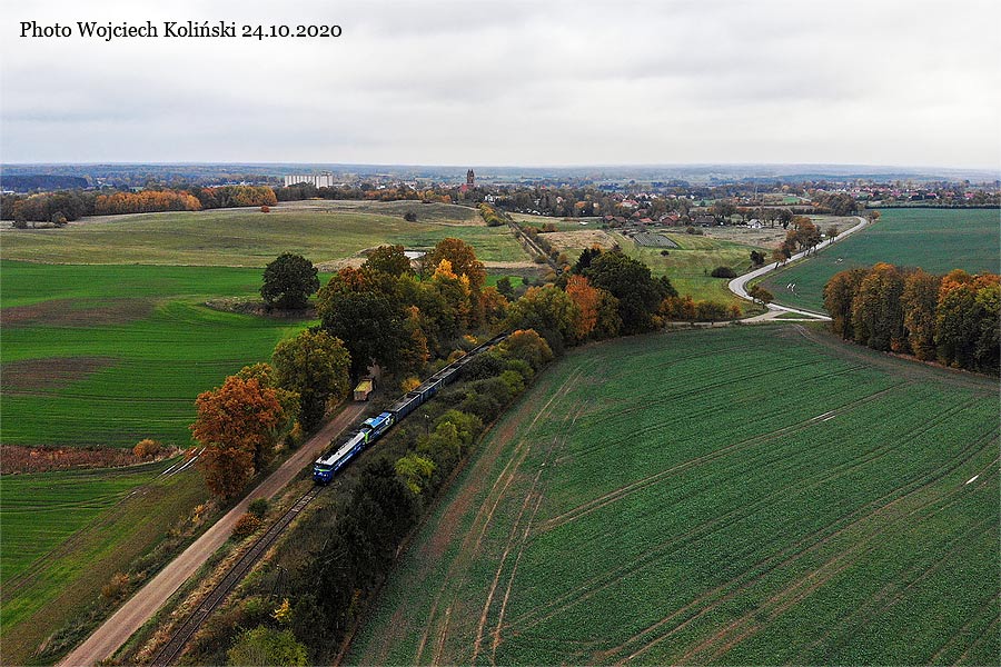 PKP Cargo ST44-1204 + SM42-1286 with the freight train Braniewo - Orneta 24.10.2020, track Pieniezno - Henrykowo Photo W. Kolins |
