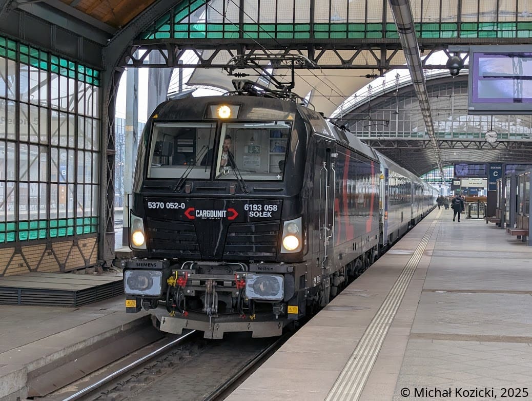Cargounit 5 370 052-0 (6193 058) on lease to PKP IC has reached its final station Wroclaw Gl. on the EIC "Viadrina" service from Warsaw via Poznan, Poland, 20.12.2025.