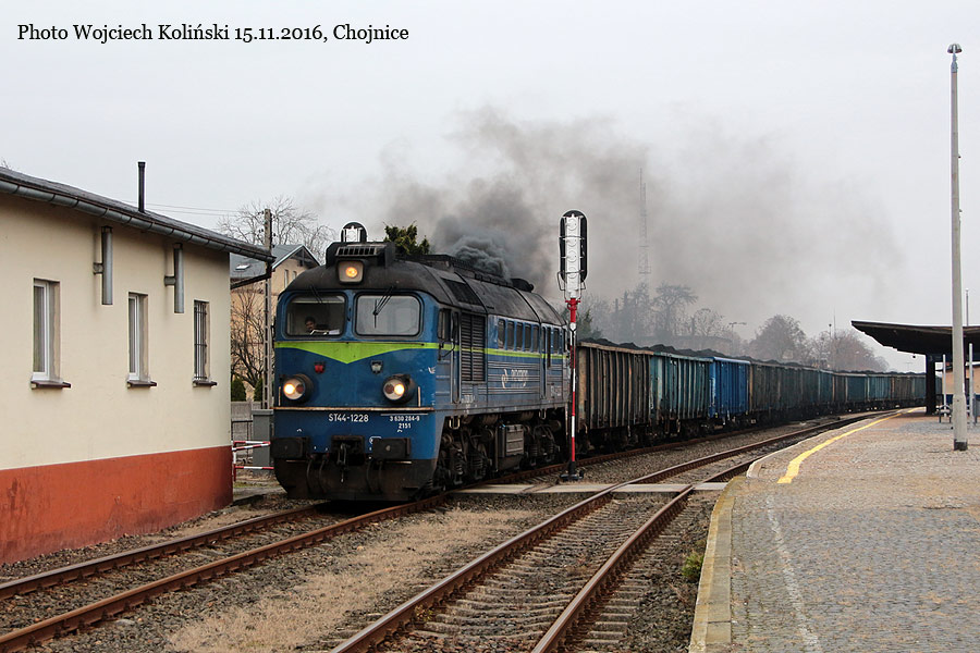 PKP Cargo ST44-1228 with the freight train to Szczecinek 15.11.2016, Chojnice Photo W. Kolins |
