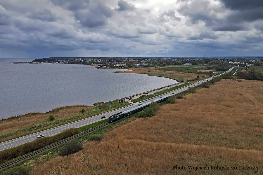 PKP Cargo ST44-1228 with the passenger train "Foka" Gdynia Glowna - Hel 20.04.2024, track Puck - Swarzewo Photo W. Kolins |