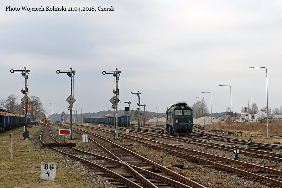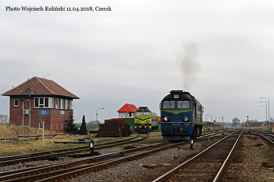 PKP Cargo ST44-1229, maneuvers around the freight train Lipusz - Szczecinek 11.04.2018, Czersk Photo W. Kolins |