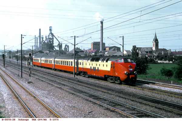 Le TEE Rame CFF/NS Edelweiss Bruxelles-Zurich passe à Uckange .